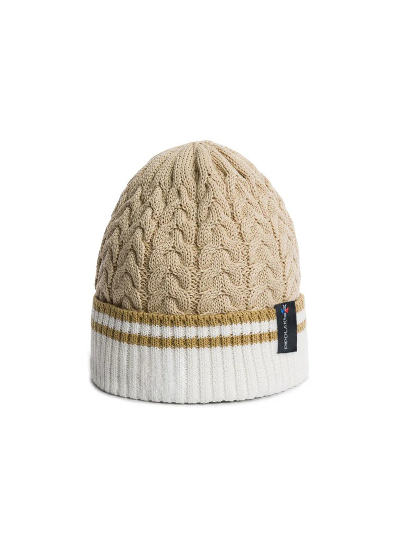 Le bonnet PIPOLAKI Arasi combine maille torsadée épurée, doublure polaire chaude et style minimal pour un usage quotidien en hiver.