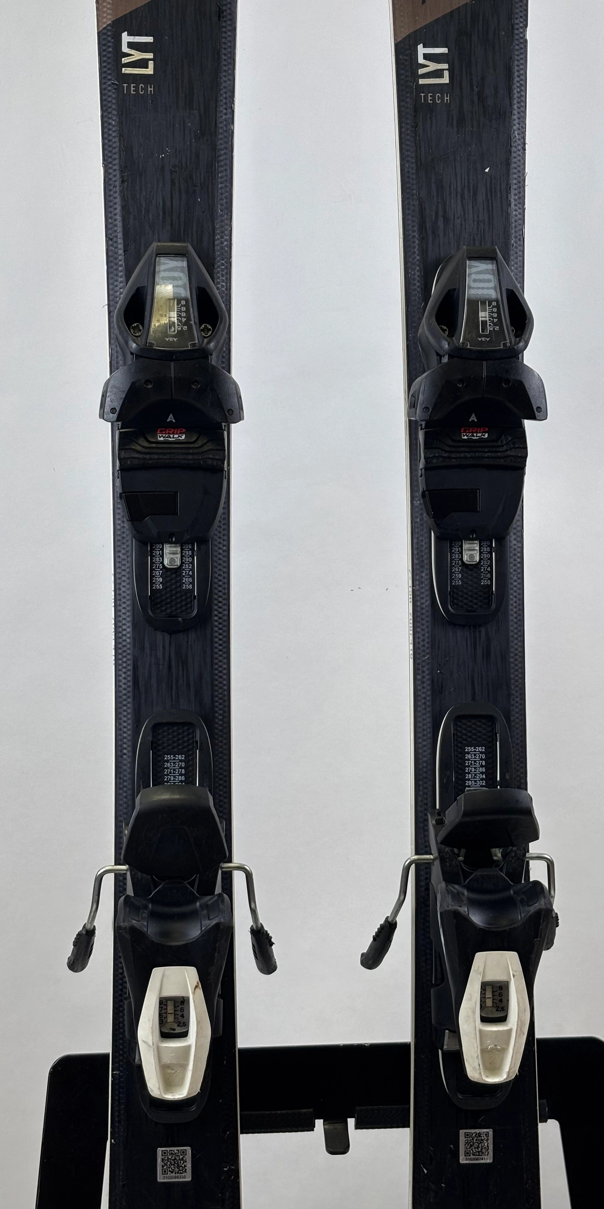 Des traces d’utilisation peuvent être présentes sur les skis, le topsheet ou les fixations selon les modèles. Celles-ci sont uniquement esthétiques et n’altèrent en rien la skiabilité, la performance ni la sécurité du matériel.
