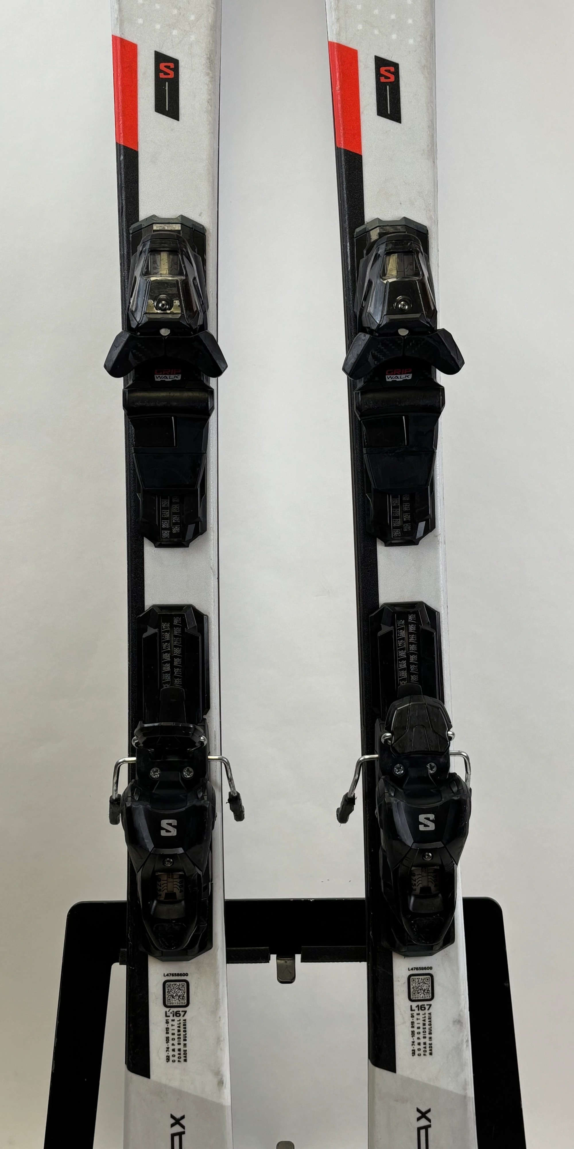 Des traces peuvent être présentes sur les skis, le topsheet ou les fixations selon les modèles. Celles-ci sont uniquement esthétiques et n’altèrent en rien la skiabilité, la performance ni la sécurité du matériel.